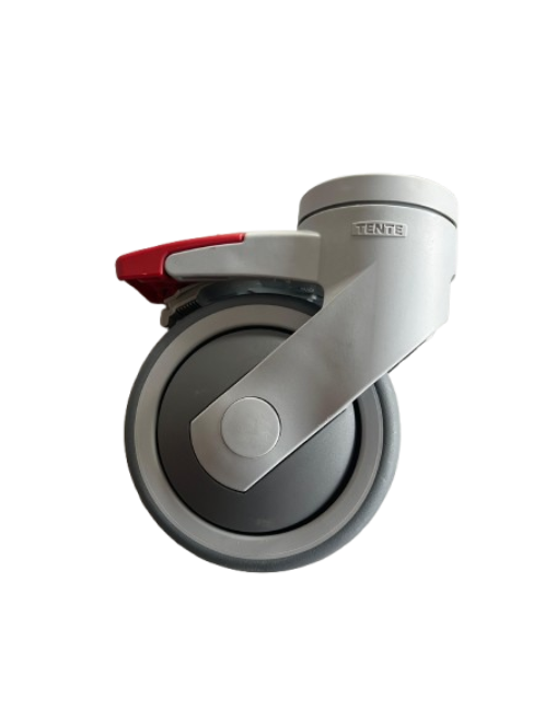 Rueda trasera con freno diseñada para grúa modelo Blue WayUp 3. Medidas: 100 mm de diámetro, 39 mm de ancho y 50 mm de eje. Fabricada en material resistente para uso intensivo y movilidad segura. Sistema de freno integrado que garantiza estabilidad durante la operación. Ideal para reemplazo o mantenimiento de equipos de elevación hospitalarios.